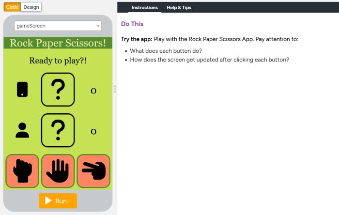 To begin the lesson students explore sample apps similar to the ones they'll be able to build by the end of the unit.