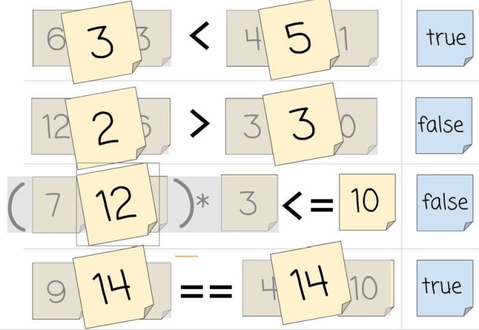 - Comparison Operators <, >, <=, >=, ==, != indicate a Boolean expression