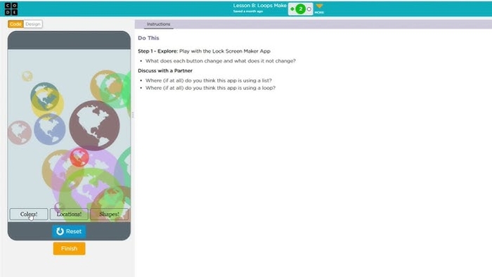 To begin the lesson students explore sample apps similar to the ones they'll be able to build by the end of the unit.