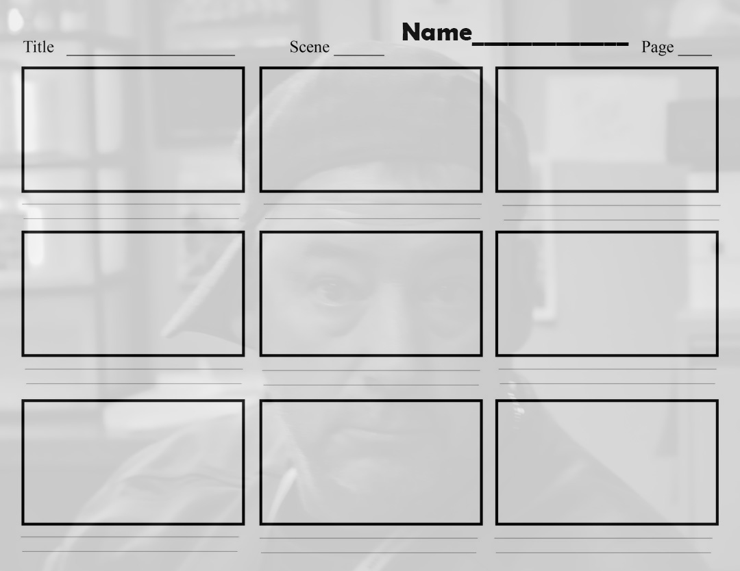 - You must have 1 storyboard sheet (9 pictures and descriptions) for each person in your group. So if you have 3 people in your group you will need to complete 3 storyboard sheets for a total of 27 pictures.