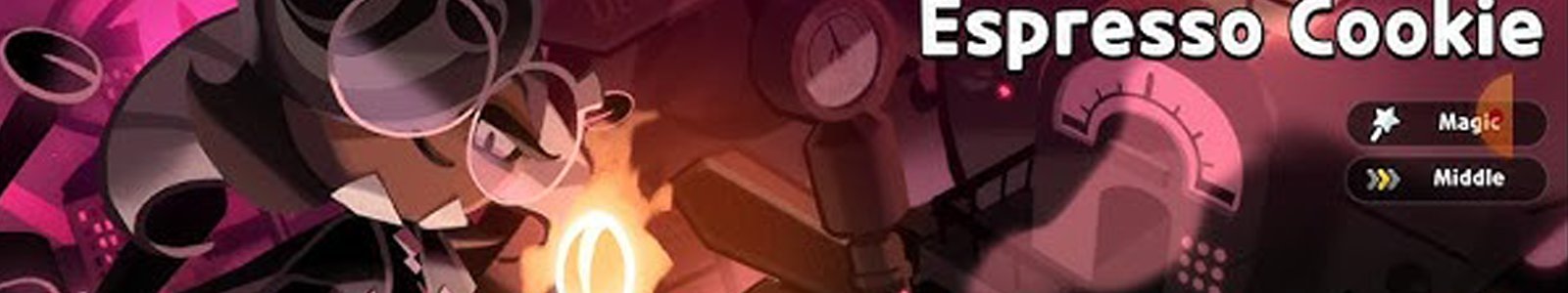 Espresso Cookie is an Epic Cookie available since launch. He is of the Magic Magic type and his position is prioritized to the Middle Middle. Espresso Cookie is the esteemed pioneer and proponent of Coffee Magic, researching and experimenting through many sleepless nights to refine his craft. He resides wherever the best research opportunities lie, teaching at Parfaedia Institute before experimenting on Soul Jams at home in the Crème Republic and then moving to the Vanilla Kingdom to work alongside Head Icon Strawberry Crepe Cookie. Espresso Cookie exudes carefully composed confidence while remaining understated. A no-nonsense intellectual, he loathes wasting time and harbors deep contempt for illogical ventures like White Magic and the Crème Republic's worship of the Divine. He is my favorite because of his design and how cute he can be sometimes : 3 |