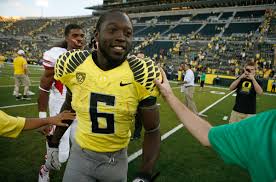 i like Oregon because i first liked their running back De'Anthony Thomas De’Anthony Thomas, often nicknamed “The Black Mamba,” was one of the most electrifying running backs and return specialists in Oregon football history. Born in Los Angeles, California, Thomas gained national attention at Crenshaw High School, where his blazing speed and agility made him one of the top recruits in the country. Choosing the University of Oregon, he became a perfect fit for coach Chip Kelly’s high-powered, up-tempo offense.