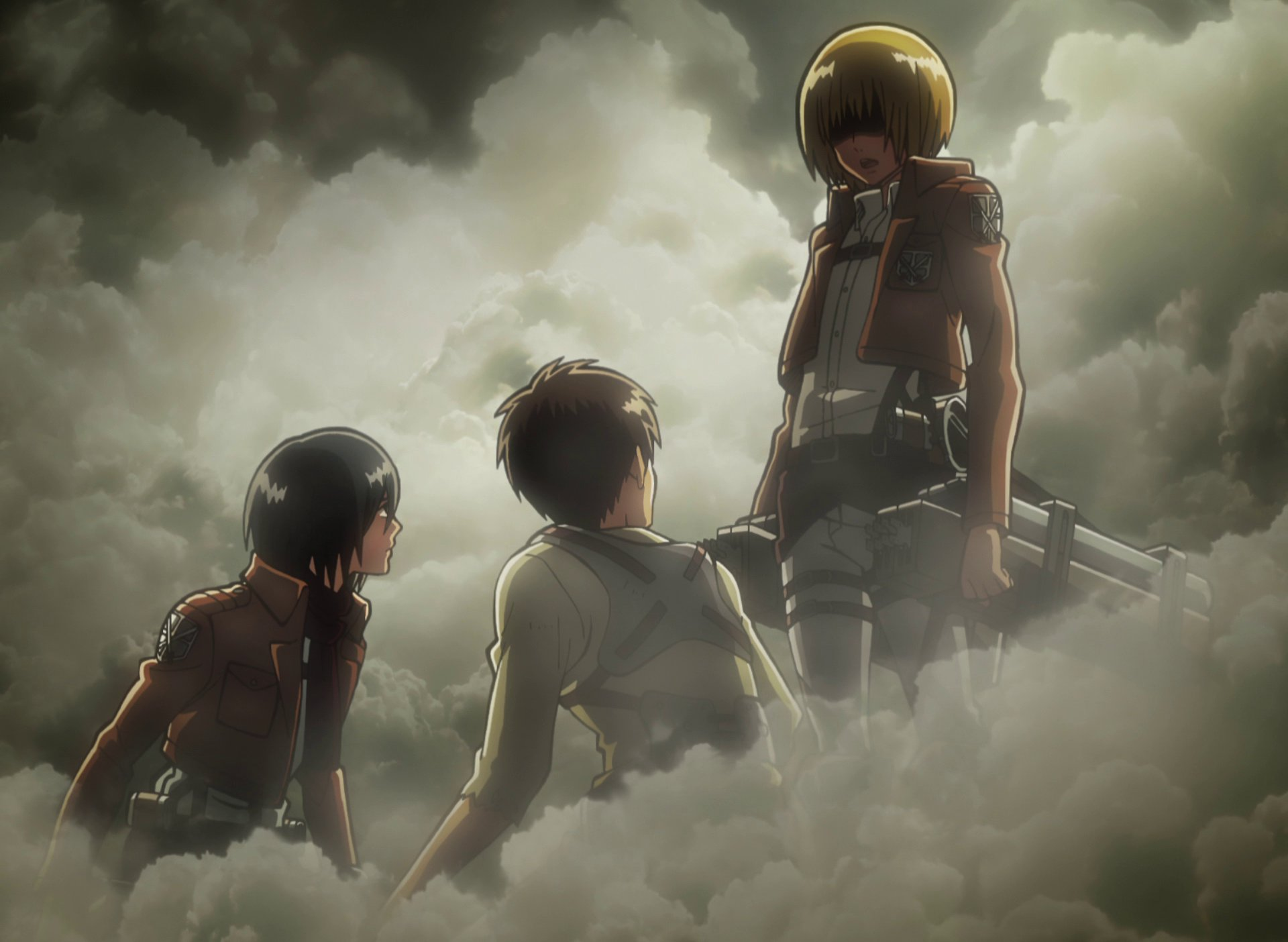 Armin Arlelt (アルミン・アルレルト Arumin Arureruto?) is the 15th and current commander (団長 Danchō?) of the Scout Regiment. He is also a childhood friend of Eren Jaeger and Mikasa Ackermann, and is one of the two deuteragonists of the series. Although he appears to be the physically weakest of the 104th Cadet Corps, his high intelligence and strategic genius makes him an invaluable asset, though he does not consider himself to be one and is known to have low self-esteem. After the battle of Shiganshina District, he took the power of the Titans from Bertholdt Hoover and became the Colossal Titan. Armin is rather short for his age with a generally small frame, although years of military training have given him a somewhat muscular build. He has a rounded feminine face with blond hair that is cut in the style of a bob. He also has large, expressive blue eyes, brown eyebrows, and a slightly upturned nose that is often slightly red.[7] During his childhood, Armin wore a long-sleeved single-buttoned jacket with a collared shirt, long dress-pants, and dress shoes.[8] As a member of the 104th Cadet Corps, Armin wears the standard 104th Cadet Corps uniform with a white button-up shirt underneath. Armin is part of the Scout Regiment and dresses in their standard uniform. Underneath his short brown jacket, he wears a white collared button-up shirt, similar to the one he wore as an adolescent. Like his fellow soldiers, Armin has supplemented his attire with a large green cape when participating in expeditions outside the Walls.[9] He also has long brown boots that reach almost to his knees, as do the other soldiers. In the year 854, he is noticeably a bit taller and has his hair cut shorter. As a soldier in the Scout Regiment, Armin is seen wearing their revamped black uniform for the night raid on Marley and a standard cloak for hiding purposes before he transformed.[10] Throughout the episodes, he wears a green military uniform and in the battle against Eren, and like both Mikasa and Jean, he wears a white long sleeved button-up shirt with a gray shoulder holster and black Survey Corp pants and boots. In the year 857, his short blond hair sports fringes in each side. Colossal Titan formIn his Colossal Titan form, Armin was entirely skinless and was extremely tall, roughly similar to Bertholdt's Colossal Titan. His Titan had elongated, stocky arms reaching its knees and very muscular legs with short thick feet. His Titan's feet were shaped so that it could stand without falling over due to its proportions and height. Armin's Titan's upper body was also fairly skinny, with an exposed rib cage on the front and sides. Its face was missing a nose and almost all of its skin, which was replaced by bare bone. The eyes of Armin's Titan form were sunken in and somber, with muscle surrounding them. Armin's teeth were shown due to the lack of skin on his cheeks. However, unlike the previous Colossal Titan, Armin's Titan had lips which were surrounded by some muscle. What made Armin's Titan particularly unique was the exposed windpipe that could be seen at its neck, with only two tendons in front of it. It also lacked visible outer ears.[10] Even when he was young, the naturally curious Armin had a deep fascination with the world beyond the Walls.[8] As a child, he found and studied an illegal book about the outside world that was owned by his grandfather. He told Eren Jaeger, his best friend, about the book and the information that was inside it. Armin was branded a heretic by the other children, for his unusual interest in the outside world, and was frequently picked on.[8] Too timid to defend himself, Armin would often need to rely on his friends (Eren and Mikasa) to protect him from local bullies. This, coupled with his frail physique, was a source of much shame for Armin, leading him to have poor self-esteem and believe himself to be a burden upon others. Because of this, Armin has always been very eager to prove his worth. As a child, he hoped that one day he would be able to consider himself a true equal to his friends.[7] Armin prepares to take action Armin continued to have low self-esteem during his training years and for a short while after graduation. During this time Armin considered himself to be useless and a burden due to his lack of physical strength and physical skill. However, soon after graduation, he came to learn that his mind is an equally valuable asset to the military and that he is not useless or a burden as he can use his brain to help people.[11] Consequently, Armin gradually gains confidence in himself and his abilities. Nonetheless, he can still be hard on himself at times. The fact that he is so willing to sacrifice himself to achieve a goal shows that he still does not value his own life as much as he should.[11] Armin is exceptionally loyal, brave and selfless. He constantly worries for the safety of his friends. Armin is always prepared to throw himself into dangerous situations to save them, even offering to sacrifice himself for Mikasa.[12] When he, Jean Kirschtein, and Reiner Braun had to decide who would be left behind without a horse, Armin immediately offered himself without hesitation. When Jean was injured in battle, Armin rushed to his aid, placing himself in danger as well.[13] Although he and Eren were determined to live their dream of seeing the outside world, Armin was content to give up his life in order to defeat the Colossal Titan and to have his dream fulfilled through Eren.[14] Armin is also very level-headed, keeping Eren and Mikasa under control when their emotions get the better of them. He has talked down a fight Eren started with a soldier and restrained Mikasa from acting rashly during Eren's military trial.[15][16] Armin is a very analytical person. He likes to think deeply about situations and solve problems using his mind. These personality traits, in conjunction with his intelligence, good judgment, level-headedness, ability to plan ah