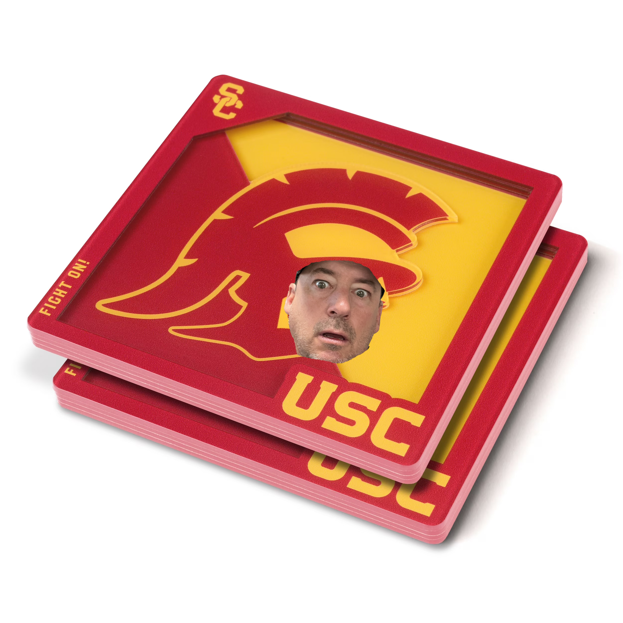 Coach Burrill Coaster: Keeping your drinks stable while watching a USC game is a challenge! Fortunately, our top scientists from the Viterbi School of Engineering have come up with a novel solution. Coach Burrill's face keeps your drinks from spilling and your floor from getting left, all for the low price of $4.99 for a pack of 10! (10, not 10 factorial [3628800]) |