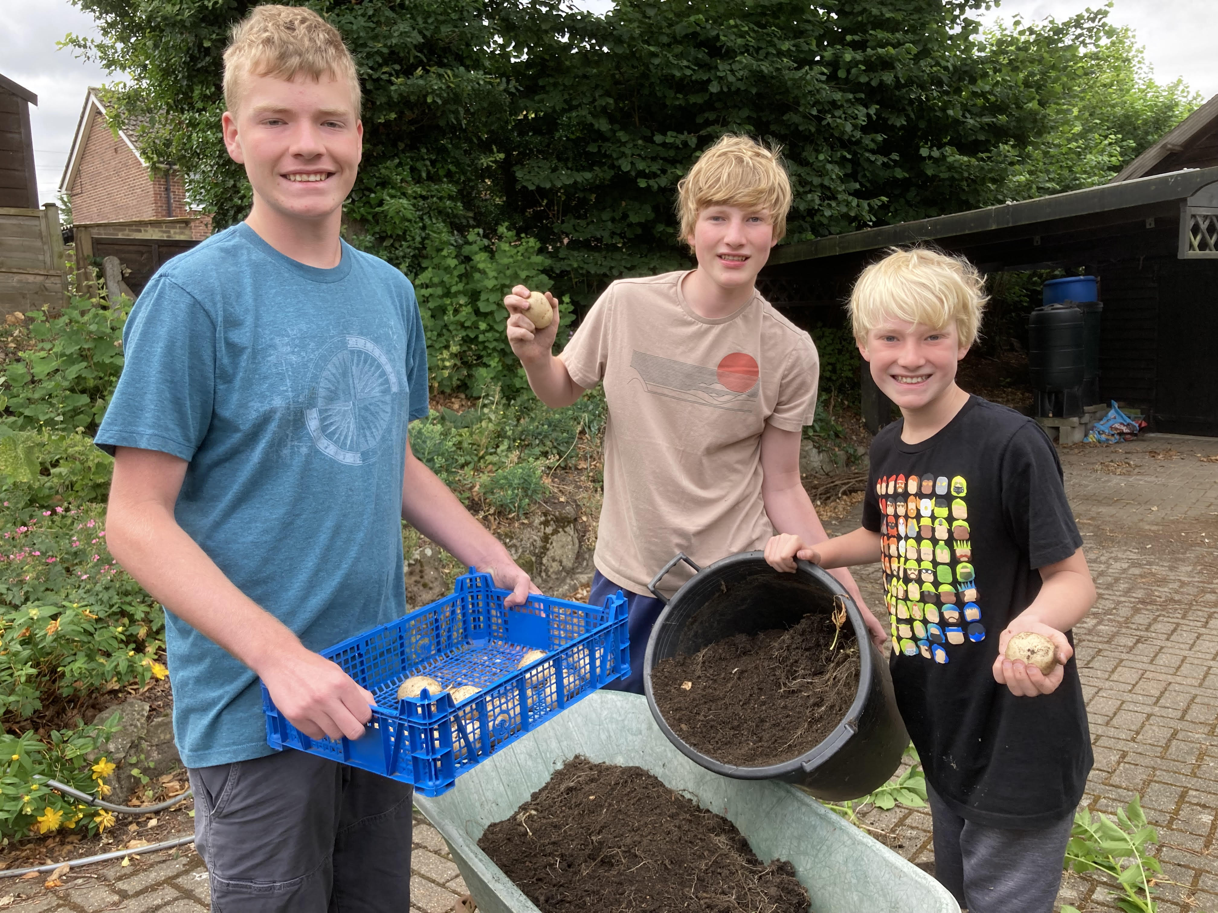 Me and my brothers farming potatoes in the UK. My grandparents have a small garden where they grow them. |